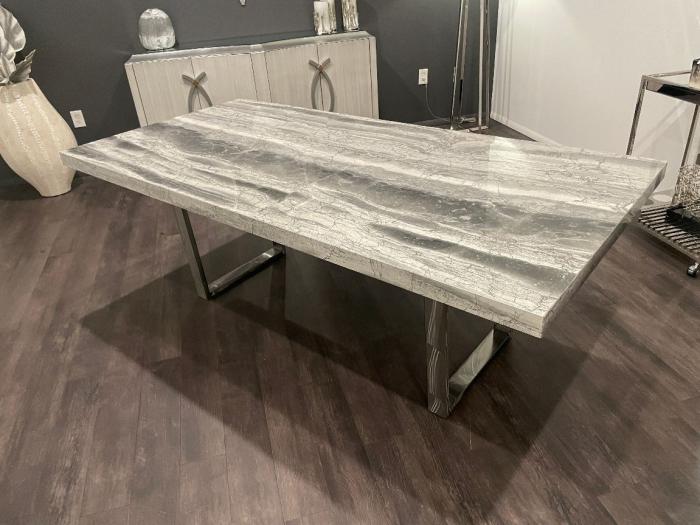 This Marble Dining Table features a sleek metal base. Available in other sizes and finishes.