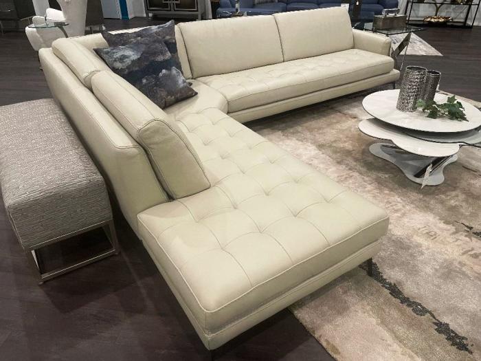 This high quality 2 Pc. Leather Sectional features tufted seats and bronze metal legs. Available In other leathers & finishes. Other pieces available.