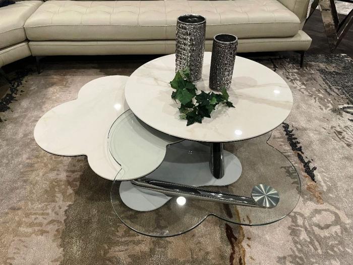 Shown with our gorgeous Motion Cocktail Table that features 2 porcelain tops and 1 glass top.