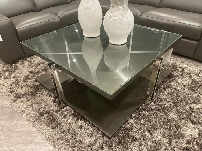 Shown with our Cocktail Table that features polished stainless steel accents. Other finishes available.