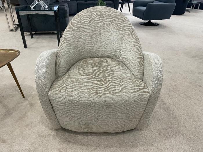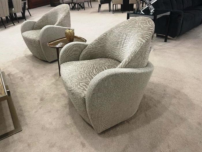 These contemporary Swivel Chairs are shown in combination fabrics and feature an upholstered base. Available in other fabrics and leathers.