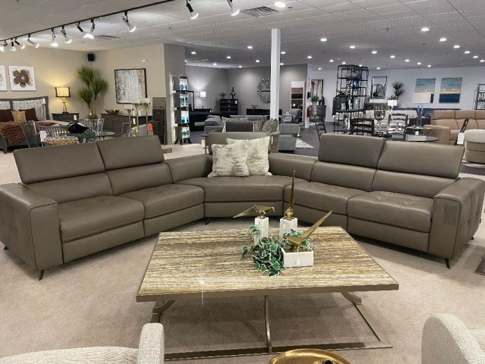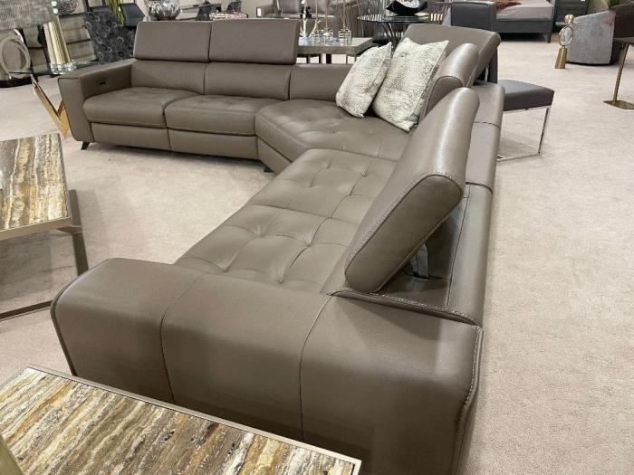 This high quality 3 pc. Leather Sectional features tufted seats and metal legs. Includes 2 motorized incliners (optional). Other leathers and fabrics availalble, Other pieces available.