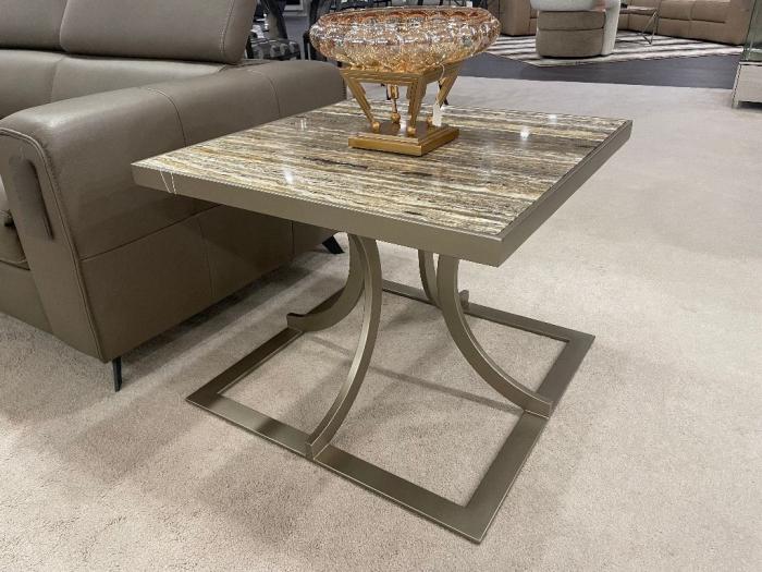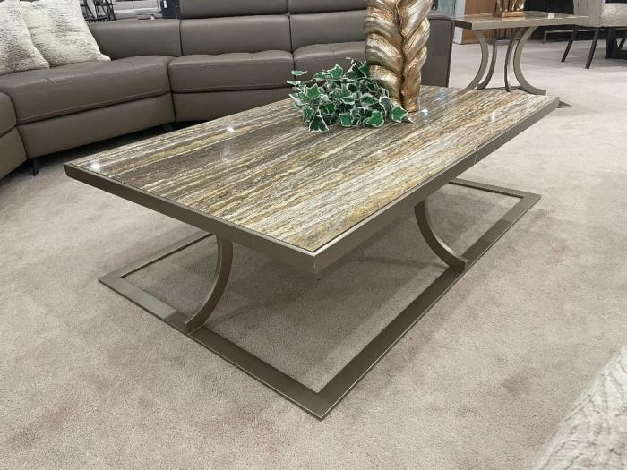 This gorgeous tables features a marble top with a metallic champagne base. Available in Other sizes. Available in other marbles and finishes.