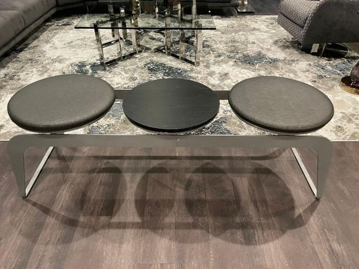 Also shown with our contemporary Bench that features a metal frame with 2 upholstered seats and 1 oak wood seat. Other finishes and fabrics available.