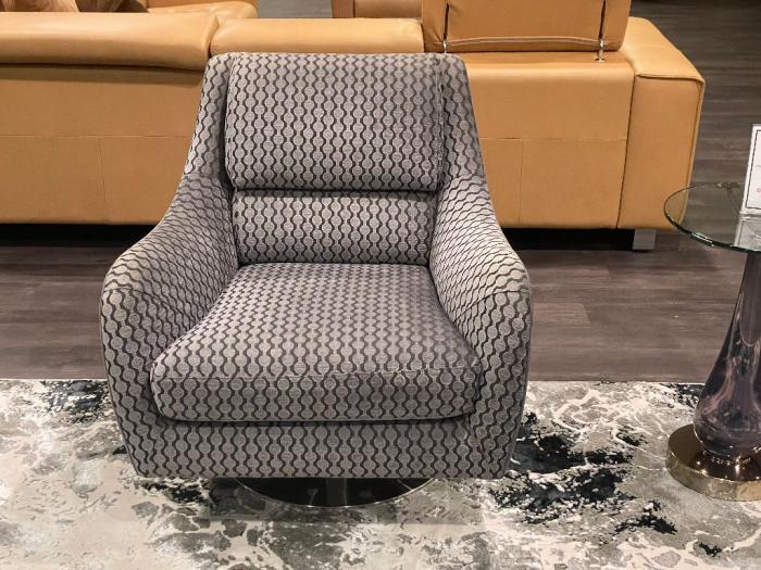 Our Swivel Chair is shown in combination fabrics and features a stainless steel base.