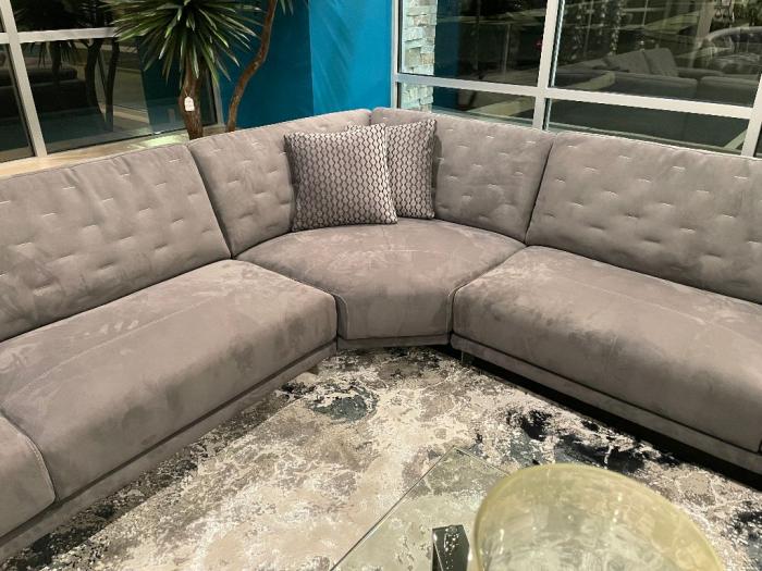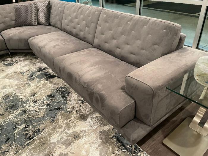 Contemporary upscale 3 Pc. Sectional shown with contrast stitching and stainless steel legs. Available in other fabrics and leathers. Other pieces available.