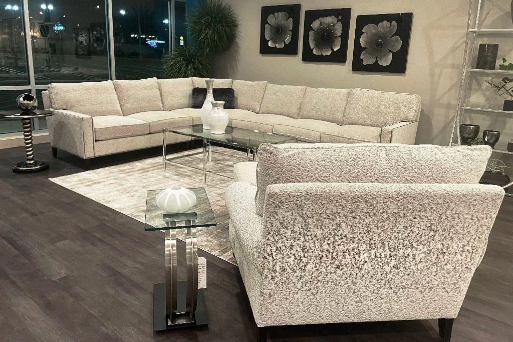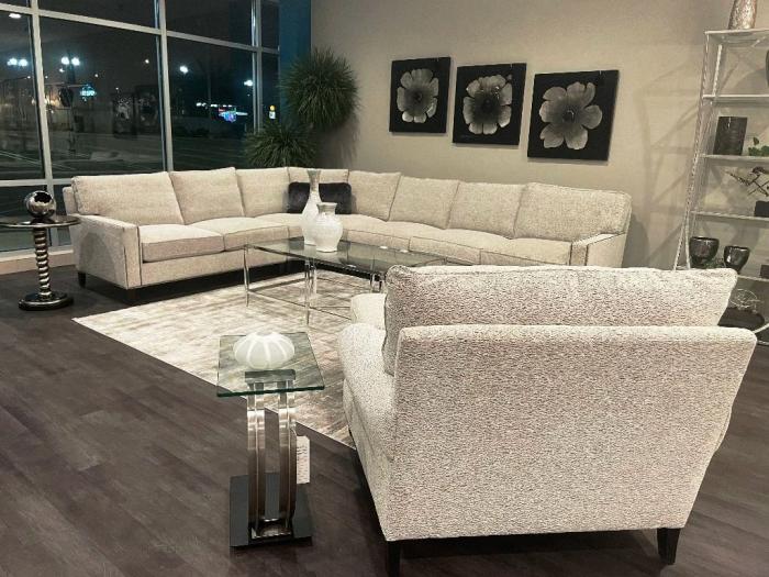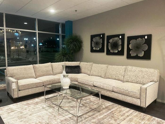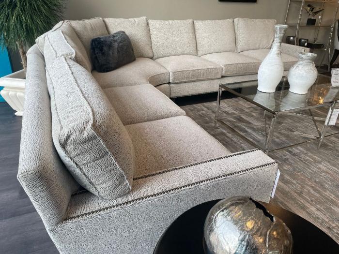 This sophisticated 3 pc. sectional is shown with nailhead trim (optional). Available in other fabrics and finishes. Available in other pieces as well.