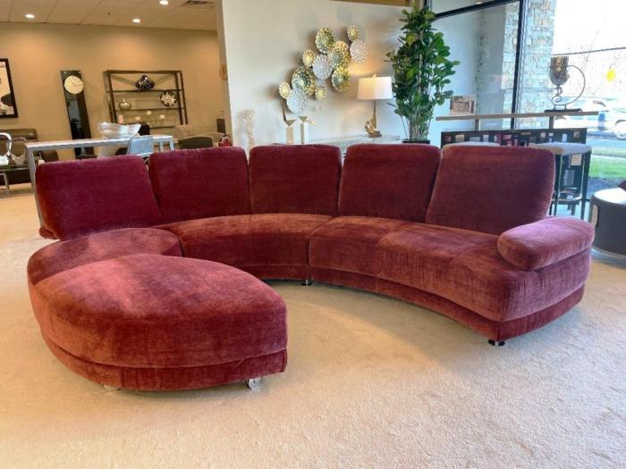This stylish 3 Pc. Sectional features a pivotal ottoman (optional) and brushed stainless steel legs. Shown in fabric. Available in other fabrics and leathers. Other pieces availalbe.