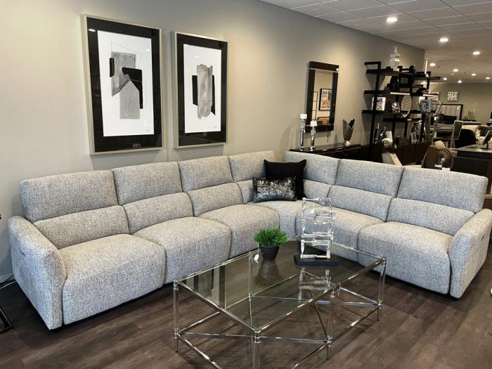 This 5 Pc. Sectional features 3 Power recliners & Headrests (optional). Other pieces available. Other fabrics & leathers available.