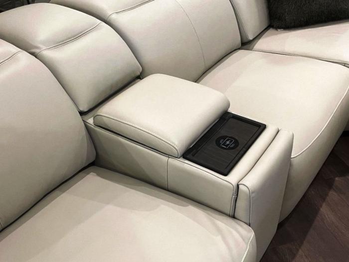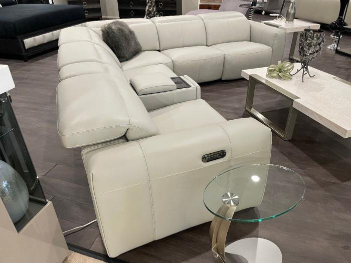 This 6 Pc. Leather Sectional features 3 mororized recliners & headrests.(optional). It is also shown with a smart console that features storage and 2 cupholders (optional). Available in other pieces. Available in other leathers and fabrics.