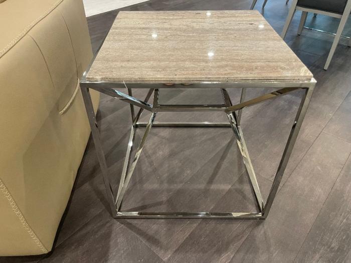 Also shown is a Cocktail Table & End Table. Both are shown in marble with stainless steel accents. Other marbles & finishes available.