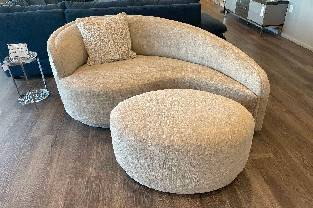 This elegant Chaise Lounge and Oval Ottoman is available in other fabrics and leathers. Chaise available in larger size.