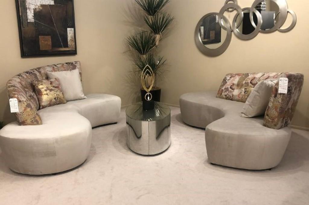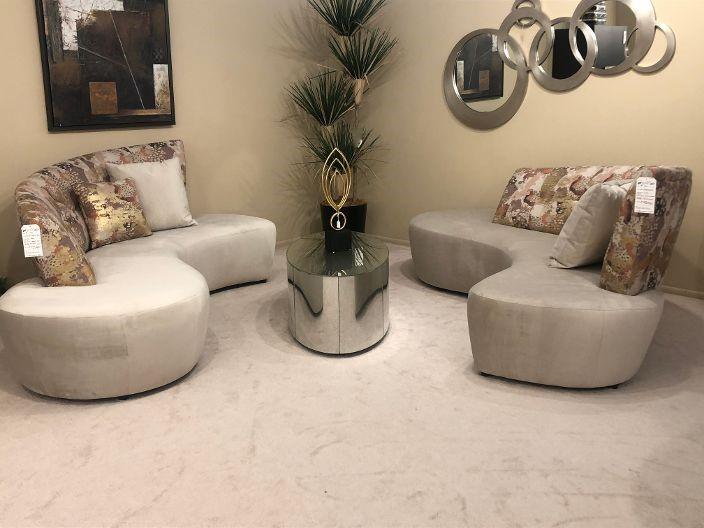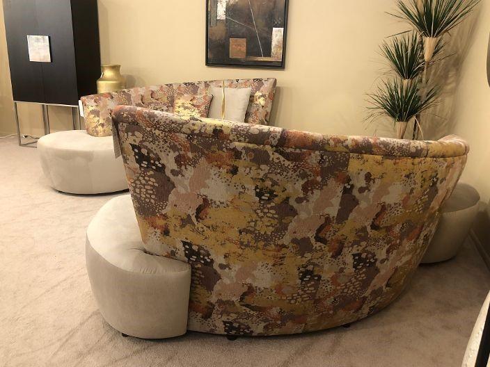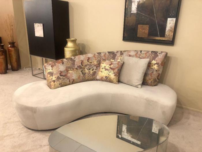 This elegant Curved Sofa is shown in a combinatin fabric. Other fabrics available.