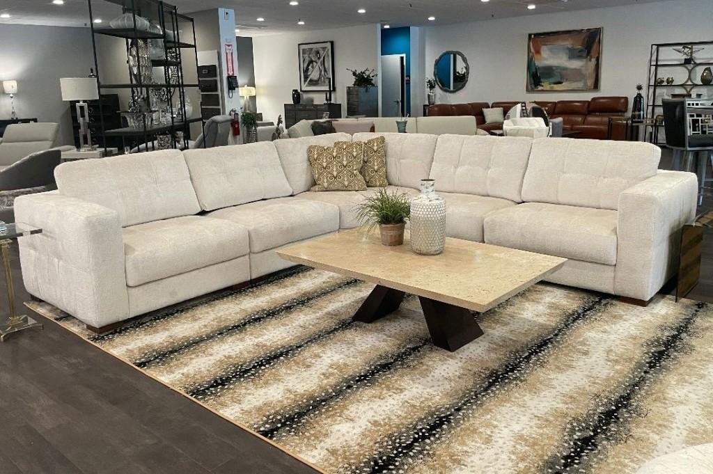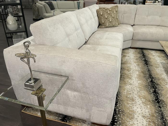 This 5 Pc. Sectional is upholstered in a luxurious fabric and features tufted detailing that adds style and texture. Available in other pieces, fabrics and leathers.