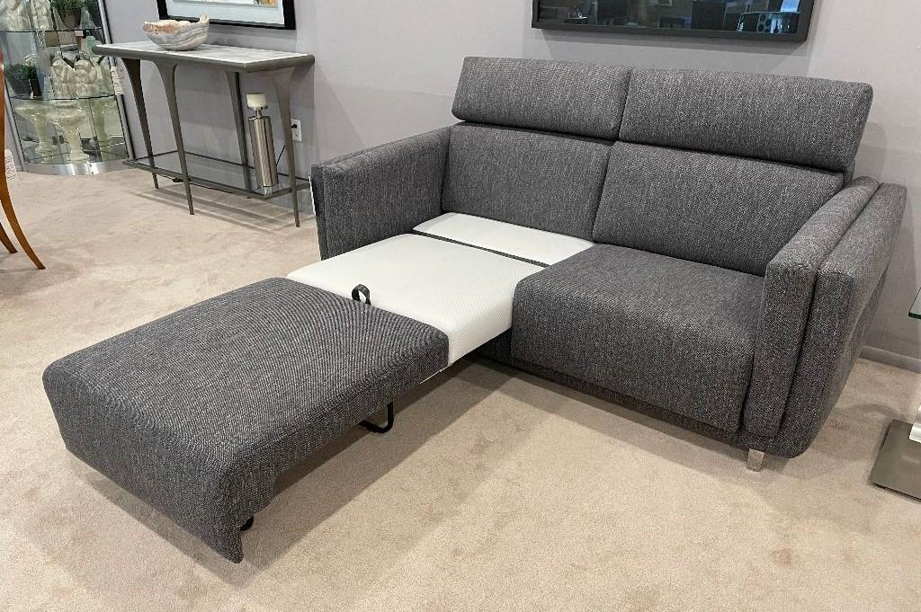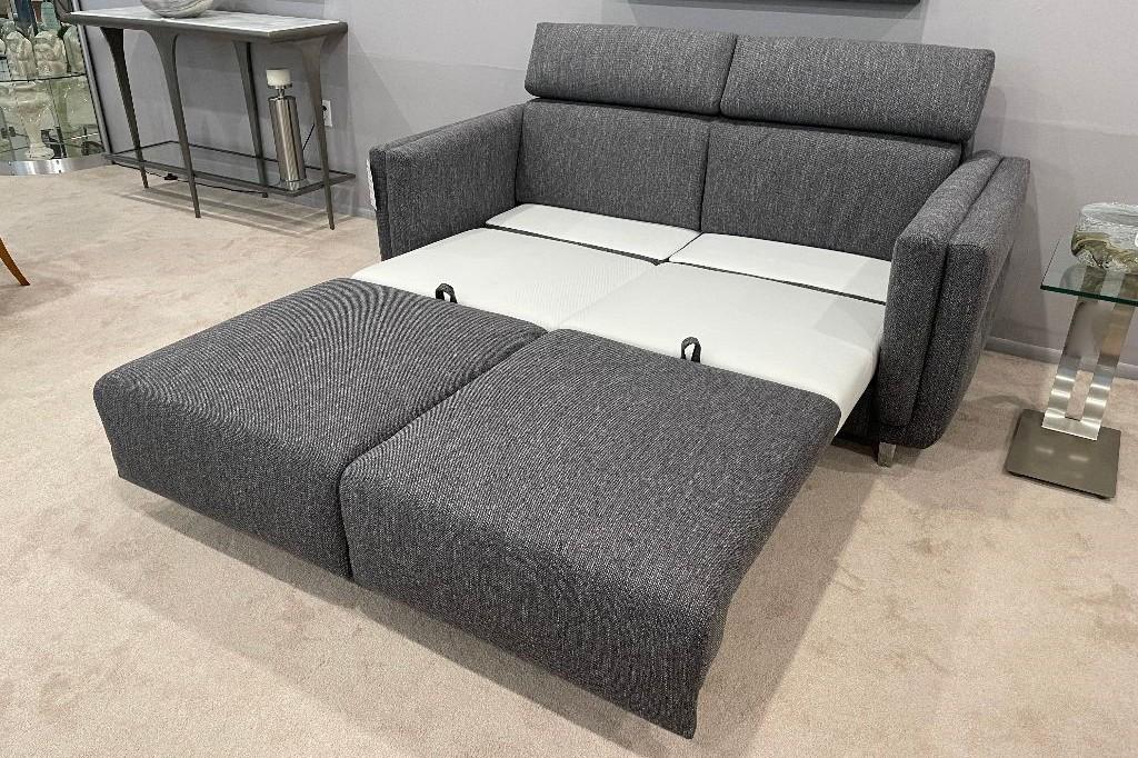 This queen size Sleeper Sofa is shown with a chrome leg. Available in other fabrics, leathers & finishes. Also available in king, full & cot size.