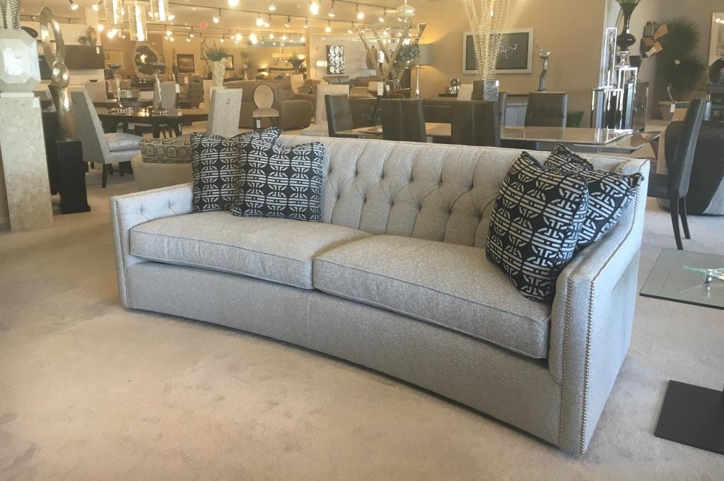 This stylish sofa features nailhead trim and includes 4 pillows. Other fabrics available.