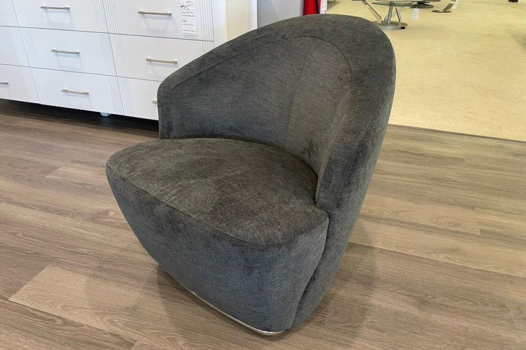 This contemporary Swivel Chair features stainless steel accents. Available in other fabrics and leathers.