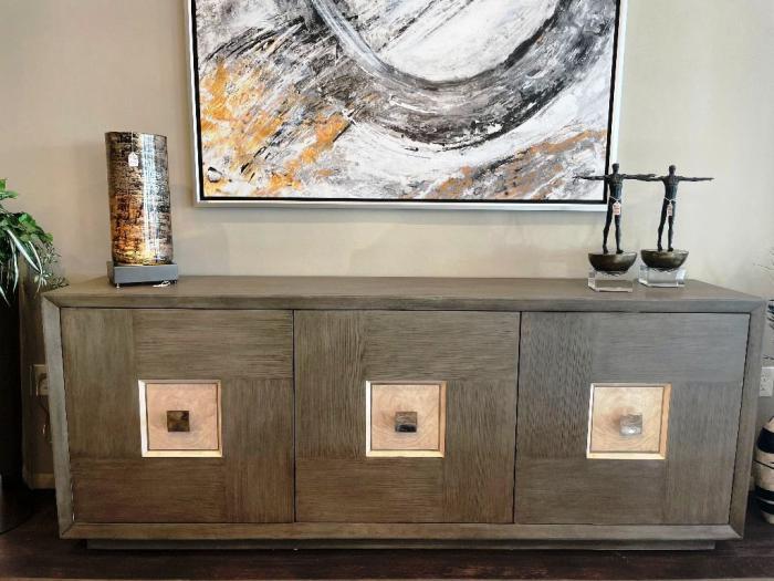 This sophisticated Media Cabinet is shown in combination woods with polished stainless steel handles. Available as sown only.